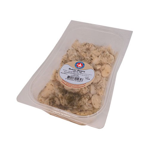 Ingredients: Butter Beans (83%), Sunflower Oil, Garlic, Vinegar, Parsley, Salt. Preservatives: E202, E211