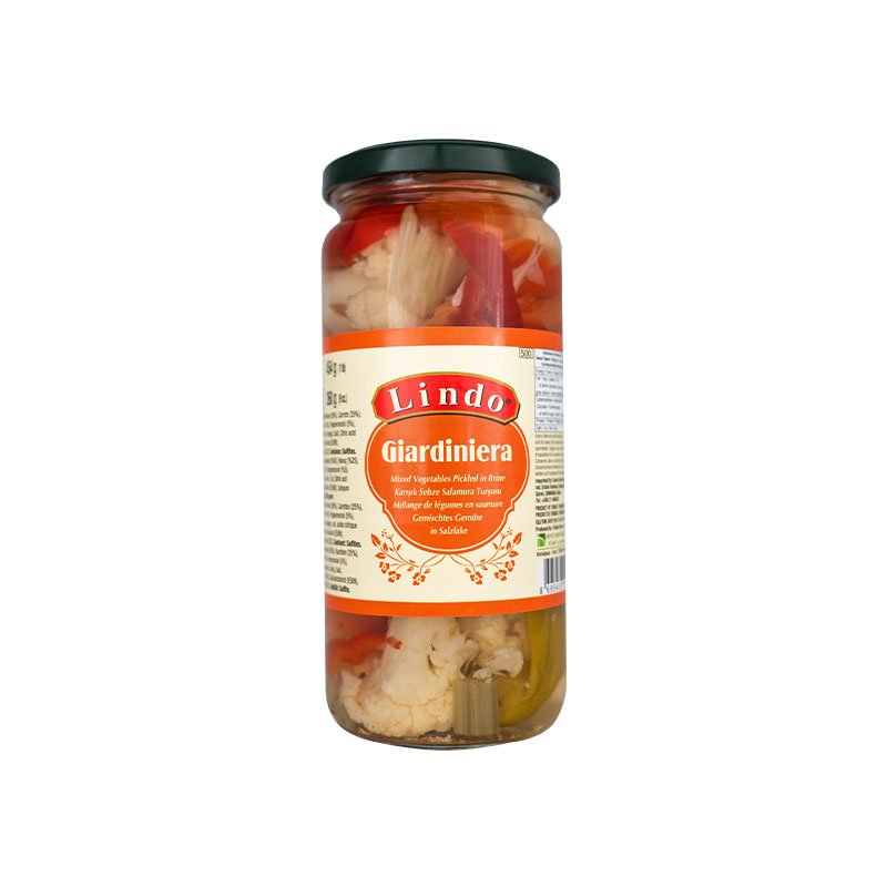 Ingredients: Cauliflower, Carrots, Red Bell Peppers, Pepperoncini, Celery, Water, Vinegar, Salt, Preservatives: Sodium Metabisulphite (E223), Sodium Benzoate (E211). Contains SULFITES